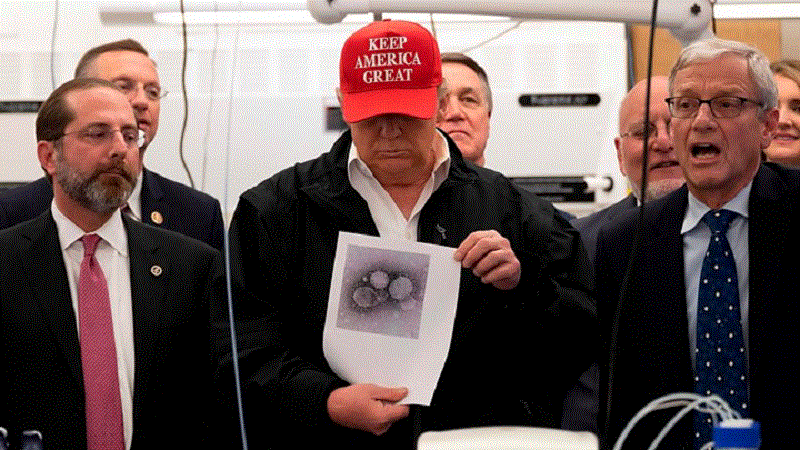 उन्होंने कंपनियों को विनिर्माण के लिए मजबूूर करने हेतु रक्षा उत्पादन अधिनियम के तहत अपनी शक्तियों का पूरी तरह से उपयोग नहीं करने का आरोप भी ट्रम्प पर लगाया। उन्होंने कहा, “इसी से जिंदगी बचेगी।