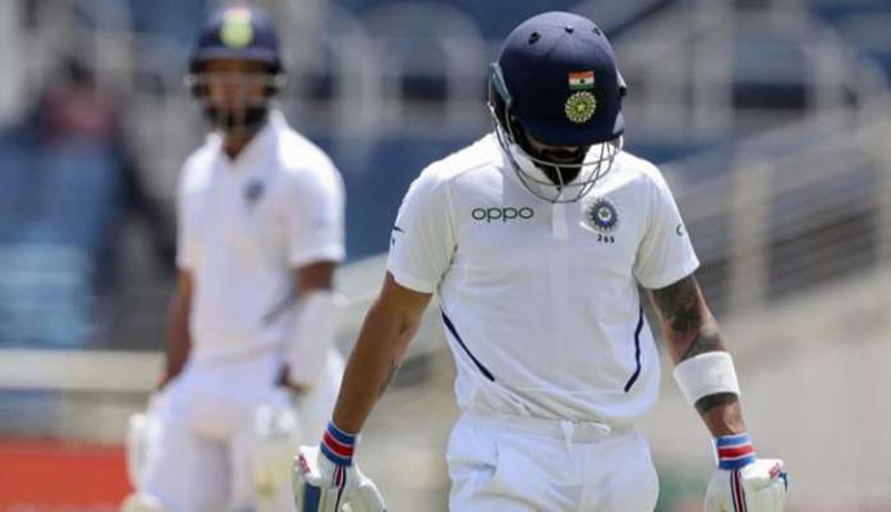 भारतीय टीम भले ही इस मैच में ड्राइविंग सीट पर है, लेकिन दूसरी पारी में विराट कोहली ने एक शर्मनाक रिकॉर्ड अपने नाम कर लिया. पहली पारी में अर्धशतक लगाने वाले कोहली दूसरी पारी में गोल्डन डक हो गए. वह कीमार रोच की ऑफ स्टंप पर बाहर जाती गेंद पर बल्ला लगा बैठे और विकेटकीपर जहमर हैमिल्टन को कैच थमा बैठे.