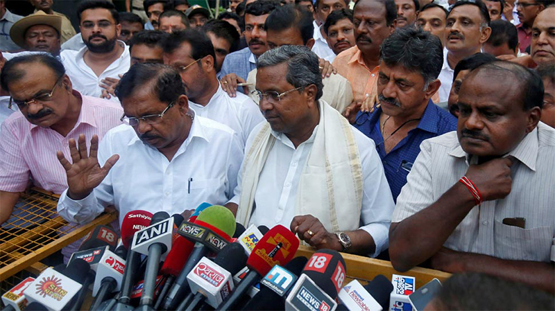 कर्नाटक में तेज राजनीतिक हलचल के बीच भाजपा ने शुक्रवार को अपने सभी विधायकों को यहां नजदीक स्थित एक रिसॉर्ट में रखने का फैसला किया है। दरअसल मुख्यमंत्री एच डी कुमारस्वामी ने अपने बागी विधायकों के इस्तीफे के बावजूद विधानसभा में विश्वास मत का प्रस्ताव लाने की घोषणा की है, जिसे देखते हुये सत्तारूढ़ कांग्रेस-जदएस गठबंधन द्वारा विधायकों की खरीद-फरोख्त के प्रयास की आशंका के बीच भाजपा ने यह कदम उठाया है। भाजपा के प्रदेश अध्यक्ष बी एस येदियुरप्पा ने संवाददाताओं को एक सवाल के जवाब में कहा कि हर एक (भाजपा विधायक) को लगता है कि उन्हें एक साथ होना चाहिए और सोमवार को एक साथ विधानसभा में आना चाहिए… मैंने कहा ठीक है। पार्टी सूत्रों ने कहा कि विधायकों के शहर के बाहरी इलाके में स्थित एक रिसॉर्ट में रहने की संभावना है। रिसॉर्ट की राजनीति कर्नाटक के लिए कोई नई बात नहीं है। सत्तारूढ़ गठबंधन ने इससे पहले भी संकट के दौरान अपने विधायकों को शहर के बाहरी इलाके के एक रिसॉर्ट में रखा था। गौरतलब है कि कर्नाटक के मुख्यमंत्री एच डी कुमारस्वामी ने शुक्रवार को कहा कि वह सदन में विश्वासमत हासिल करना चाहते हैं और उन्होंने विधानसभा अध्यक्ष के. आर. रमेश कुमार से इसके लिये समय तय करने का अनुरोध किया है। विधानसभा के 11 दिवसीय सत्र के पहले दिन सदन की बैठक में मुख्यमंत्री ने सत्तारूढ़ गठबंधन के 16 विधायकों के इस्तीफा देने की पृष्ठभूमि में यह अप्रत्याशित घोषणा की। विधायकों के इस्तीफे की वजह से सरकार का अस्तित्व खतरे में है। अध्यक्ष के अलावा सत्तारूढ़ गठबंधन का कुल संख्याबल 116 (कांग्रेस-78, जद(एस)-37 और बसपा-1) है। दो निर्दलीय उम्मीदवारों का भी सरकार को समर्थन प्राप्त था, लेकिन, उन्होंने सोमवार को मंत्री पद से इस्तीफा दे दिया है। उधर, भाजपा के पास 107 विधायक हैं। 224 सदस्यीय सदन में बहुमत के लिए 113 विधायकों का समर्थन जरूरी है। अगर 16 विधायकों के इस्तीफे स्वीकार कर लिए जाते हैं, तो गठबंधन का संख्याबल घटकर 100 रह जाएगा। कुमारस्वामी की अप्रत्याशित घोषणा और शक्ति परीक्षण के लिए भाजपा की तैयारी से संबंधित सवाल पर येदियुरप्पा ने कहा कि वे कुमारस्वामी के बयान के आधार पर अपनी रणनीति तय करेंगे। भाजपा के इस दिग्गज नेता ने कहा, ‘‘एक मुख्यमंत्री के तौर पर, उन्होंने यह बयान दिया है, मैं इससे कैसे मना कर सकता हूं। यह उन्हीं पर छोड़ते हैं। विश्वास मत प्रस्ताव को लेकर मुख्यमंत्री क्या बोलते हैं, उसके आधार पर हम अपनी रणनीति तय करेंगे।’’ उल्लेखनीय है कि उच्चतम न्यायालय ने शुक्रवार को कर्नाटक विधानसभा के अध्यक्ष के आर रमेश कुमार से कहा कि सत्तारूढ़ गठबंधन के 10 बागी विधायकों के इस्तीफों और उनकी अयोग्यता के मसले पर अगले मंगलवार तक कोई भी निर्णय 