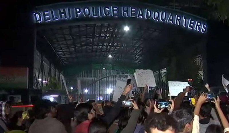 दिल्ली पुलिस मुख्यालय के बाहर प्रदर्शन