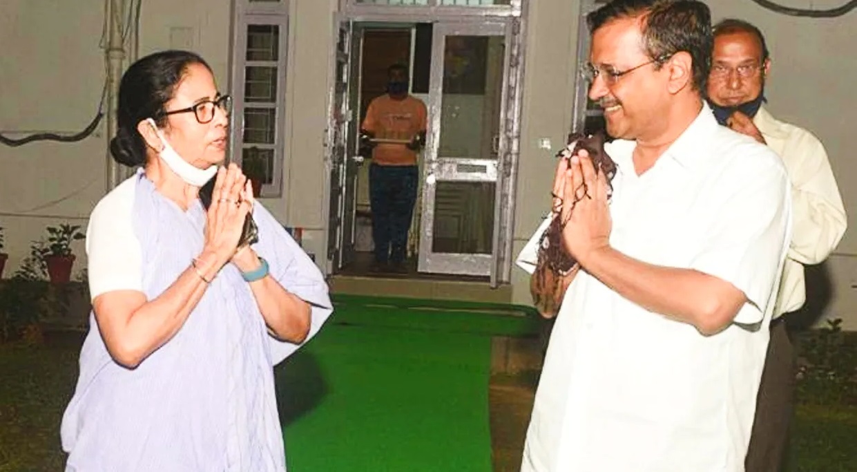 नई दिल्ली: दिल्ली के मुख्यमंत्री अरविंद केजरीवाल ने शुक्रवार को पश्चिम बंगाल की मुख्यमंत्री ममता बनर्जी से मुलाकात की| दोनों नेताओं के बीच इस मुलाकात के बाद राजनीतिक कयासबाजी शुरू हो गई| हालांकि टीएमसी के सूत्रों ने इस मुलाकात को शिष्टाचार मुलाकात कहा है| दोनों मुख्यमंत्रियों के बीच यह मुलाकात टीएमसी सांसद और सीएम ममता बनर्जी के भतीजे अभिषेक बनर्जी के दिल्ली स्थित आधिकारिक आवास पर हुई थी|