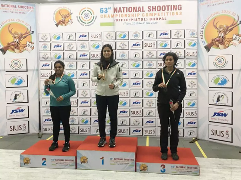सीनियर वर्ग में देवांशी धामा ने 237.8 अंकों के साथ रजत जबकि यशस्विनी सिंह देसवाल ने 217.7 अंकों के साथ कांस्य पदक अपने नाम किया।
