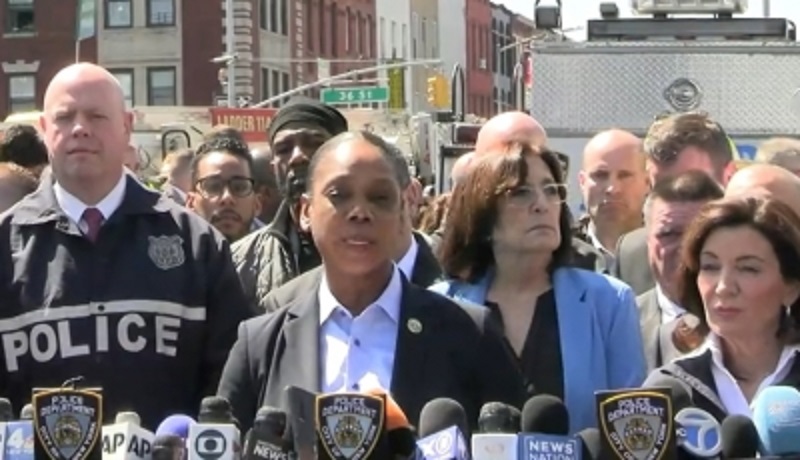 न्यूयॉर्क सिटी के अधिकारियों ने बताया कि ब्रूकलिन में सुबह (भारतीय समयानुसार मंगलवार शाम) भीड़भाड़ वाली ट्रेन में एक व्यक्ति ने अंधाधुंध गोलियां चलायीं, जिसमें 10 लोगों को गोली लगी जबकि कई लोग स्मोक बम से निकले धुंए, भगदड़ में गिरने या पैनिक अटैक के कारण घायल हुये।