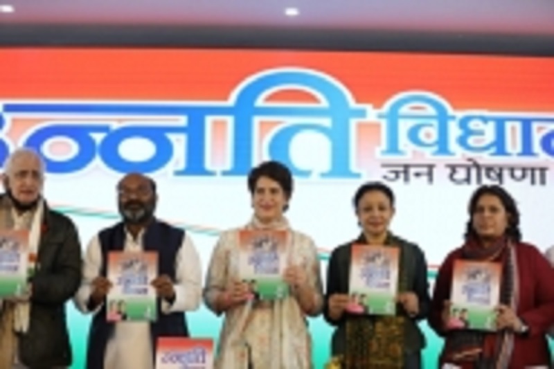 उत्‍तर प्रदेश में प्रियंका गांधी वाड्र्रा की अगुवाई में चुनाव लड़ रही कांग्रेस पार्टी ने अपना चुनाव घोषणा पत्र जारी कर दिया है. पार्टी ने वादों का पिटारा खोलते हुए महिलाओं और युवाओं सहित समाज के हर वर्ग को लुभाने की कोशिश की है. कांग्रेस का यह घोषणा पर राज्‍य में कल 10 फरवरी को पहले चरण की वोटिंग के ठीक पहले आया है. राज्‍य में सात चरणों में मतदान होना हैऑ