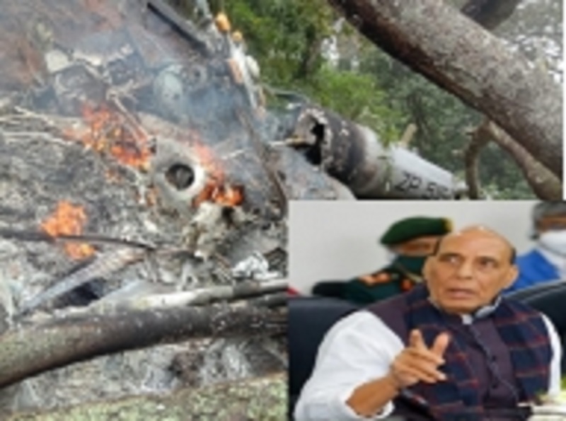 नई दिल्ली – रक्षा मंत्री राजनाथ सिंह तमिलनाडु में हेलिकॉप्टर दुर्घटना के बारे में लोकसभा में जानकारी दे सकते हैं, जिसमें चीफ ऑफ डिफेंस स्टाफ (सीडीएस) बिपिन रावत, उनकी पत्नी और 11 अन्य रक्षा कर्मियों का निधन हो गया है। सिंह इस बारे में राज्यसभा में भी जानकारी देंगे।