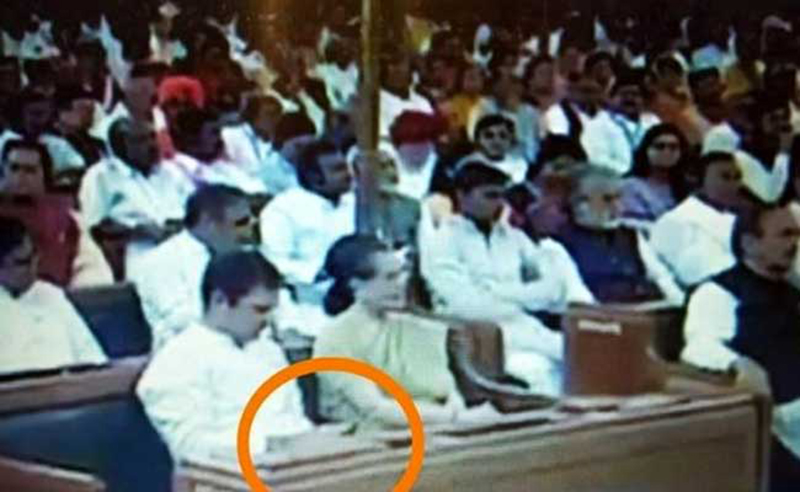 हालांकि राहुल गांधी अपने मोबाइल फोन देखते रहे। सोनिया गांधी द्वारा वैसा नहीं किए जाने का इशारा करने पर भी वह सदन के पटल को घूरते रहे।