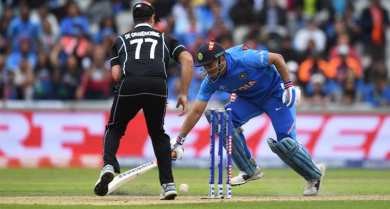 ऐसा लग रहा था कि जडेजा और धोनी की जोड़ी भारत को फाइनल में पहुंचा देगी तभी ट्रेंट बाउल्ट ने मैच का रुख बदल दिया. उन्होंने 208 के कुल स्कोर पर जडेजा को कप्तान केन विलियम्सन के हाथों कैच कराया. जडेजा ने 59 गेंदों का सामना कर चार चौके और चार छक्के मारे. धोनी क्रीज पर भारत की आखिरी उम्मीद थे. आखिरी दो ओवरों में भारत को 31 रनों की दरकार थी. धोनी ने पहली गेंद पर छक्का मारा और दूसरी गेंद पर दो रन लेने चाहे. दूसरा रन लेने दौड़े धोनी, मार्टिन गुप्टिल की डायरेक्ट हिट से पहले बल्ला क्रीज पर नहीं रख सके और यहीं भारत की उम्मीदें खत्म हो गई. धोनी ने 72 गेंदों का सामना कर एक छक्का और एक चौका लगाया.